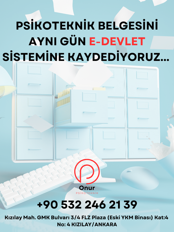 Ne kadar sürede raporumu alabilirim? Teste girdikten sonra doktor muayenesi de tamamlandıktan sonra sisteme girilen psikoteknik belgeniz e-devlet sistemine otomatik olarak düşer. psikoteknik belgenizi e-devlet sisteminden temin edebilirsiniz.