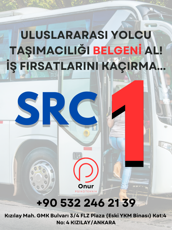 Src 1 Belgesi Uluslararası Yolcu Taşımacılığı faaliyetinde bulunan sürücülerin alması yasal olarak zorunlu bir belge türüdür. Sınır kapılarından geçecek olan otobüs sürücülerine Src 1 belgesi ile ülke sınırları dışına çıkışına izin verilir.