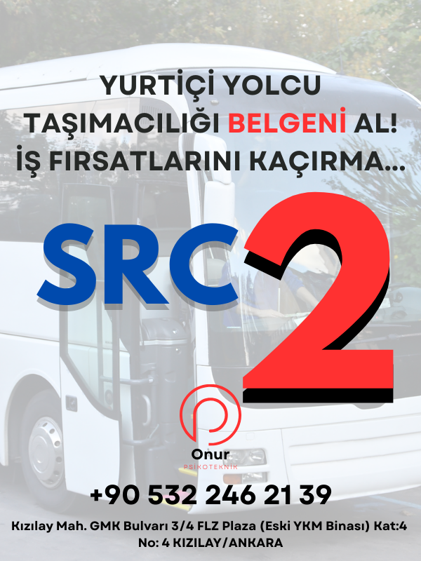 Yurtiçi yolcu taşımacılığı amacıyla verilen SRC 2 belgesi; dolmuş, şehir içi ve şehirlerarası otobüs sürücüleri, personel taşımacılığı ya da okul servisi şoförleri ve taksiciler için gerekli bir belgedir. SRC 2 belgesi, Türkiye’de taşımacılık yapan herkesin sahip olması gereken bir belgedir.