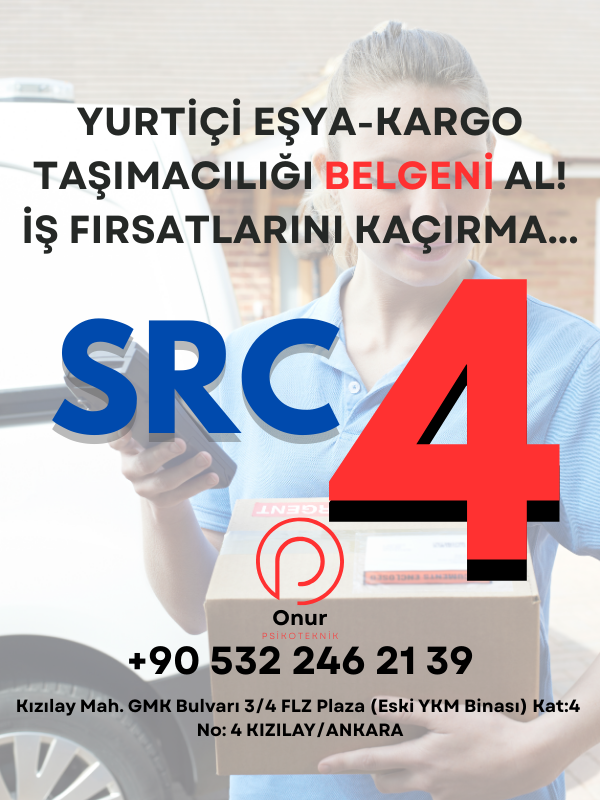 SRC (Sürücü Mesleki Yeterlilik Belgesi), ticari amaçla yük veya yolcu taşıyan sürücülerin alması gereken bir mesleki yeterlilik belgesidir. Kamyonet ya da panelvan gibi hafif ticari araçlarla yurt içinde ücret karşılığında yük taşıyorsanız, SRC 4 belgesi almanız zorunludur.