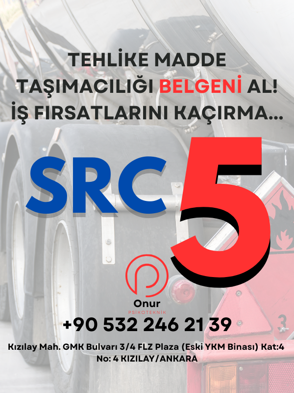 Src 5 Belgesi: Tehlikeli madde taşıyan aracı kullanan şoförlerin aldığı bir mesleki yeterlilik belgesidir.Mesleki ve branşta uzmanlık yeri geldiği zaman risklerin ortadan kalkması için çok önemlidir. Tehlikeli madde taşımacılığında bu tür uzmanlık belgesi