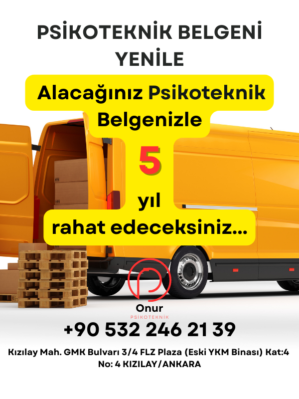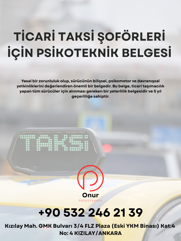 Bu sorumluluk, ticari araç sürücüleri için daha da önemlidir. Psikoteknik belgesi, ticari araç sürücülerinin zihinsel ve fiziksel olarak araç kullanmaya uygun olduklarını kanıtlayan bir belgedir. Psikoteknik değerlendirme, sürücünün dikkat, refleks, motor becerileri ve psikolojik durumunu ölçen testlerden oluşur.